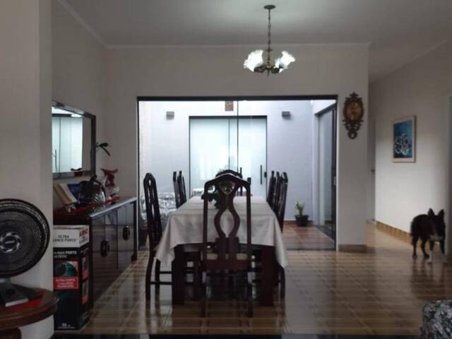 Casa térrea com 3 dormitórios (2 com ar condicionado, sendo 1 suíte), sala de estar, sala de jantar, jardim de inverno, Cozinha, despensa, churrasqueira com Cozinha e Banheiro, Quarto de despejo grande (reversível para escritório) garagem para 4 carros.